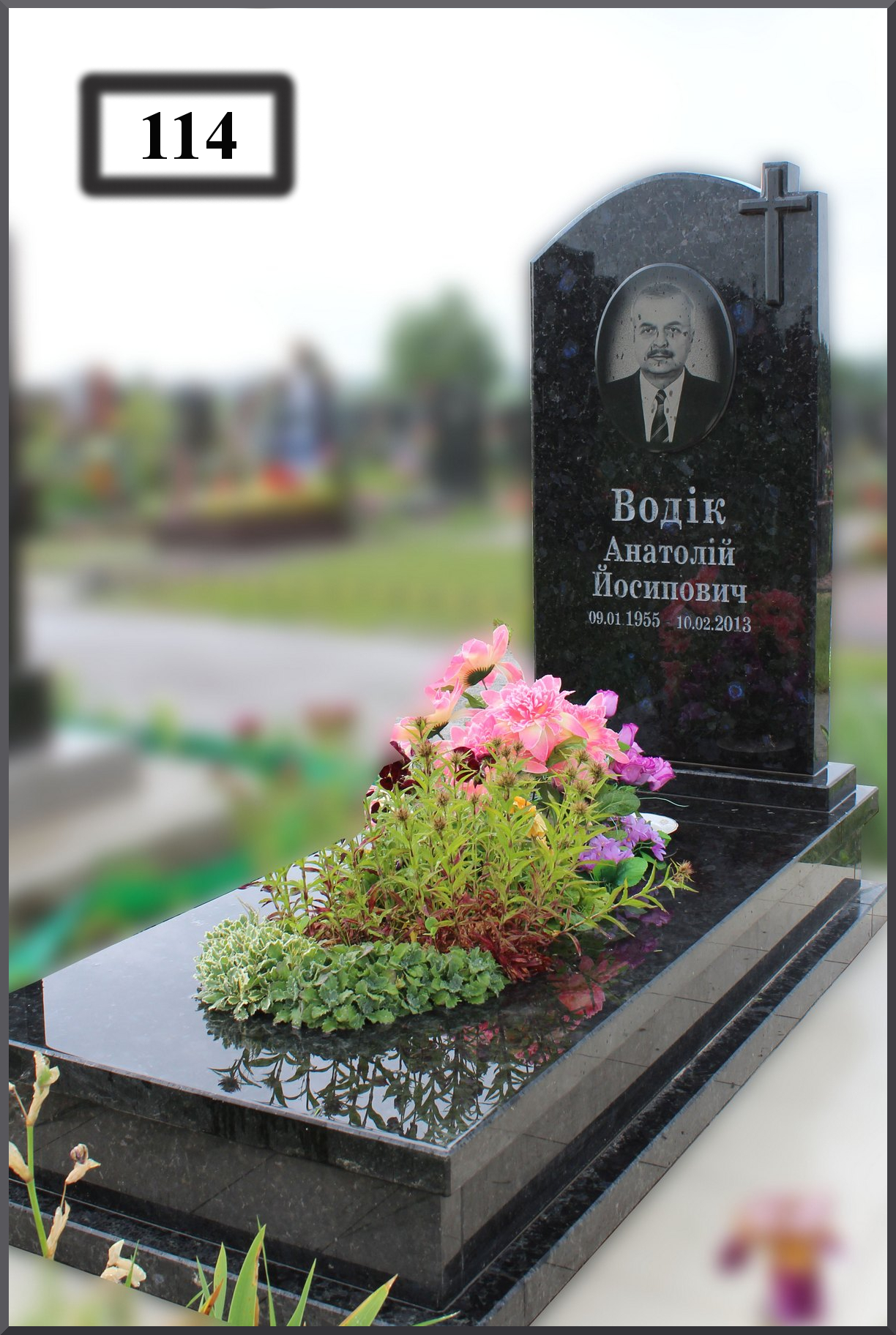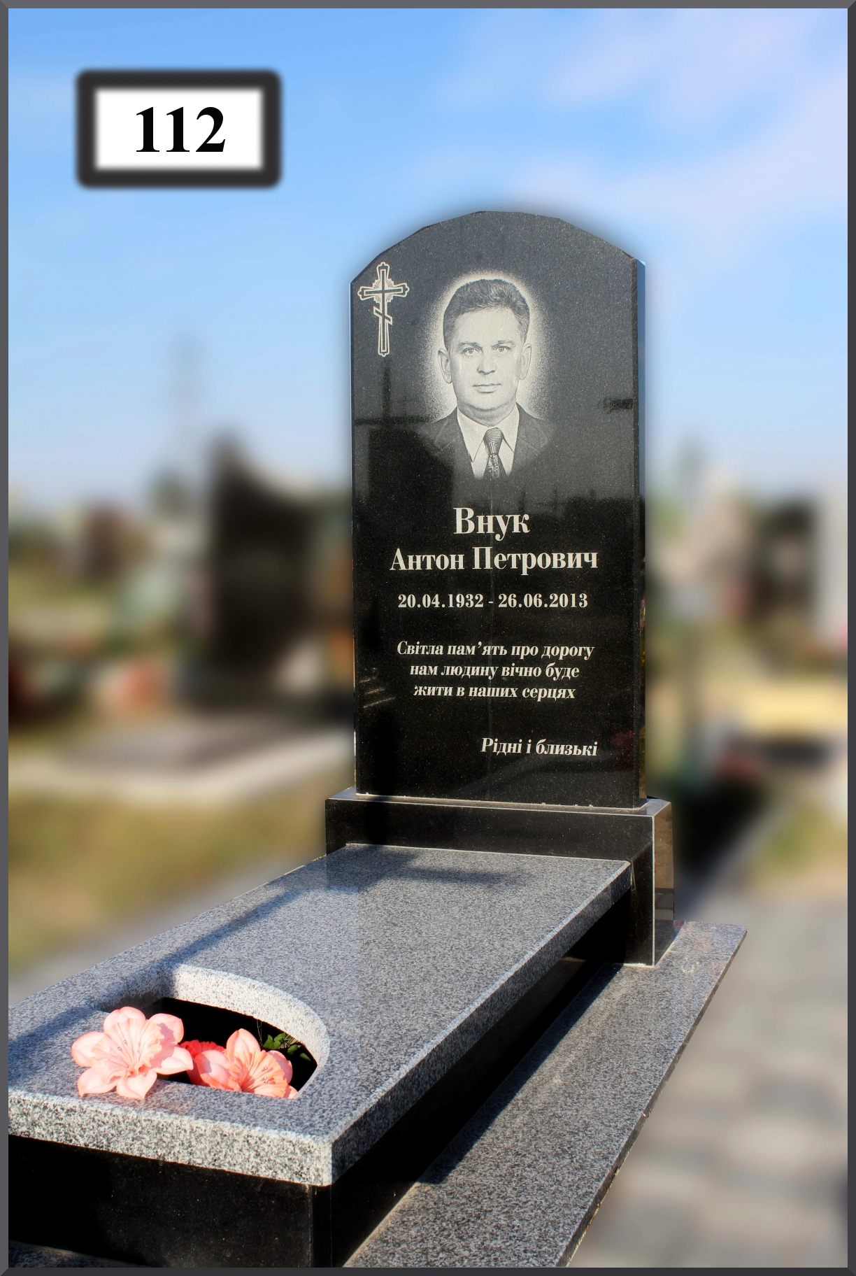 Элитный памятник с цветным портретом на керамогранитной пластине.